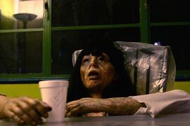精英妹坚持要探索地堡,因此众人进入,结果在里面遇到一个已经不成人形的枯老头,枯老头对地产商老板说:你必须死。地产商老板以为他是在诅咒自己,一把将老头推死了。万万没想到,这句并不是诅咒,而是一句提醒,全句其实是:你必须第一个死。(这里巧妙的设置了一个悬念,当然要看到最后才知道。)