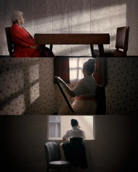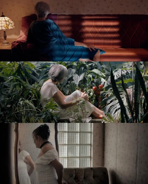 当她们走入垂暮之年,顶着满头白发也依然优雅美丽,享受生活和感受身体的快乐,然后她们共同讲述一段关于自己的历史,那么多相似甚至可以串联出一个毫无违和感的故事,这个故事被三位不同年纪的演员演绎成了女人的一生,她的经历,她的感受,她的思考等等,有关于她的一切,在这部电影里温柔缓慢的呈现。 女性们的独白构成了非线性的对过往生活和当下选择的描述,而演员们则在一个房间里呈现着不同时间下交织的记忆。镜头对准她们的生活,声音讲述着发生的事,虽不重合,却相互映衬着书写了一段“女性的历史”,不是一个人而是一群人,包括规训、痛苦、束缚等等。当她说,“自幼被加入了无数莫须有的原罪,我们却从未学过如何挣脱这枷锁…… 总浮现认罪的画面, 为挨打自责而告解,但当时只会自责。”我跟着想到书中提到的被塑造的女性们。这个性别带着对自己的期待降临,却又被规训着厌恶自己。生活不断的打碎女孩子的期待,从身体的变化、到过早的恋爱期待、再到和想象中完全不同的婚姻、经历病痛鼓起勇气离开成为自己的过程……这是一段释放的历史,也是正在改变的当下。